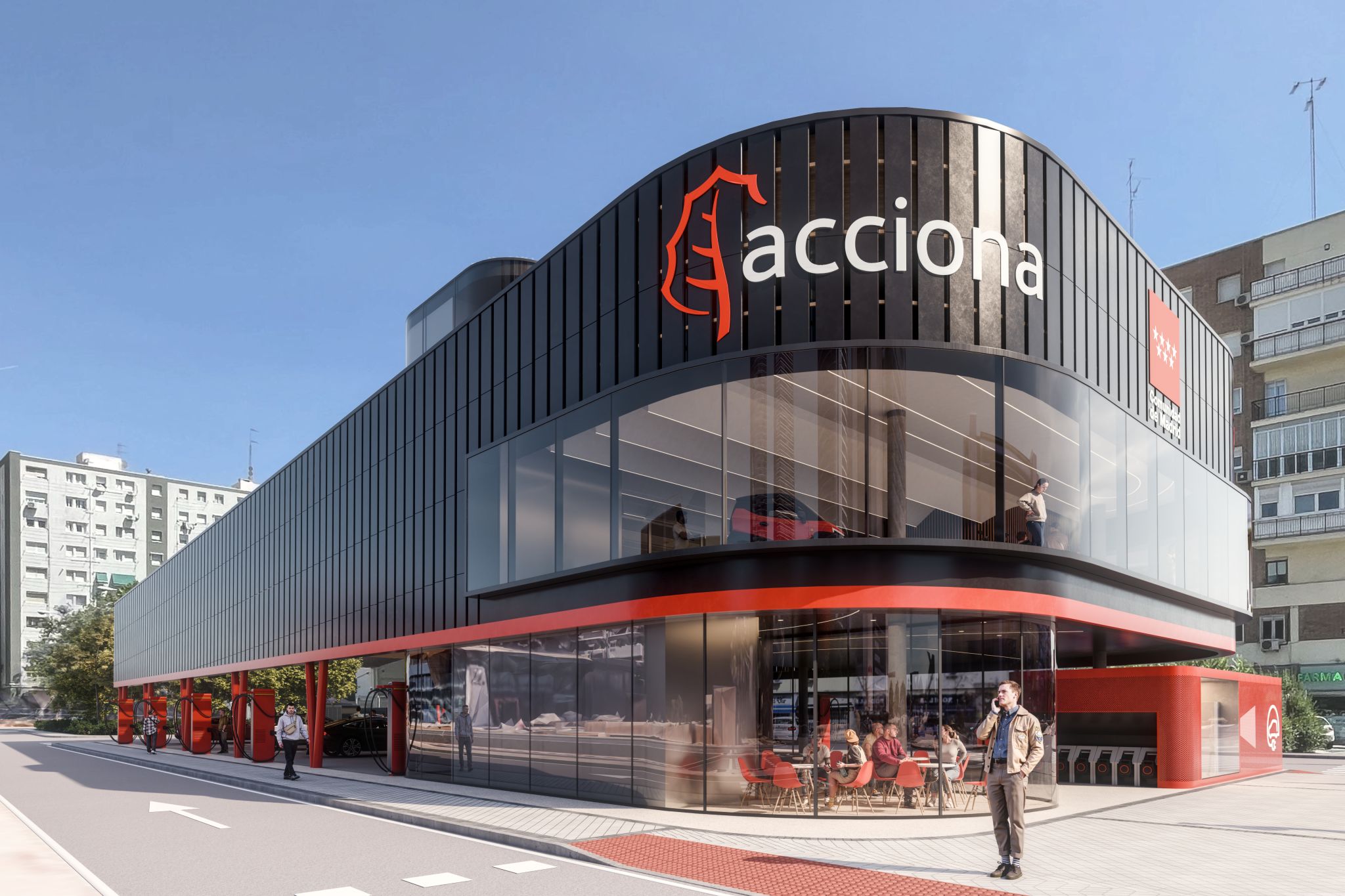 Este proyecto de Cano y Escario Arquitectura parte de una idea clara, transformar un entorno urbano duro, dominado por el alto tráfico y la verticalidad corporativa, en un espacio acogedor, humano y eficiente, transformando una antigua estación de servicio degradada, en un nodo estratégico de 4.000 kW de potencia, integrado en el futuro desarrollo de Madrid Nuevo Norte.