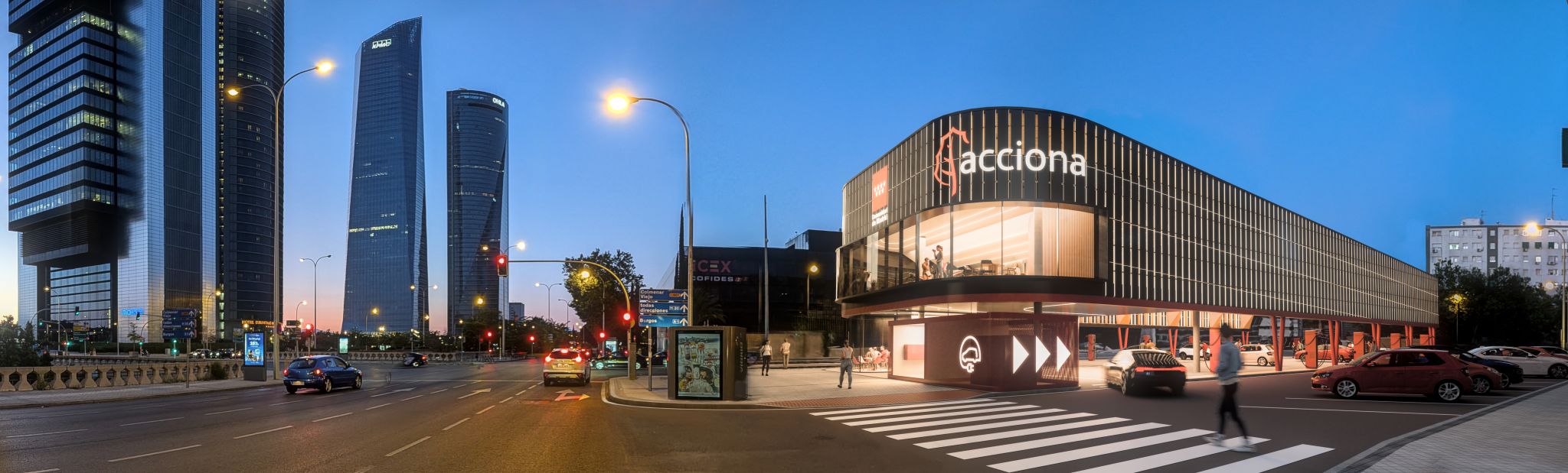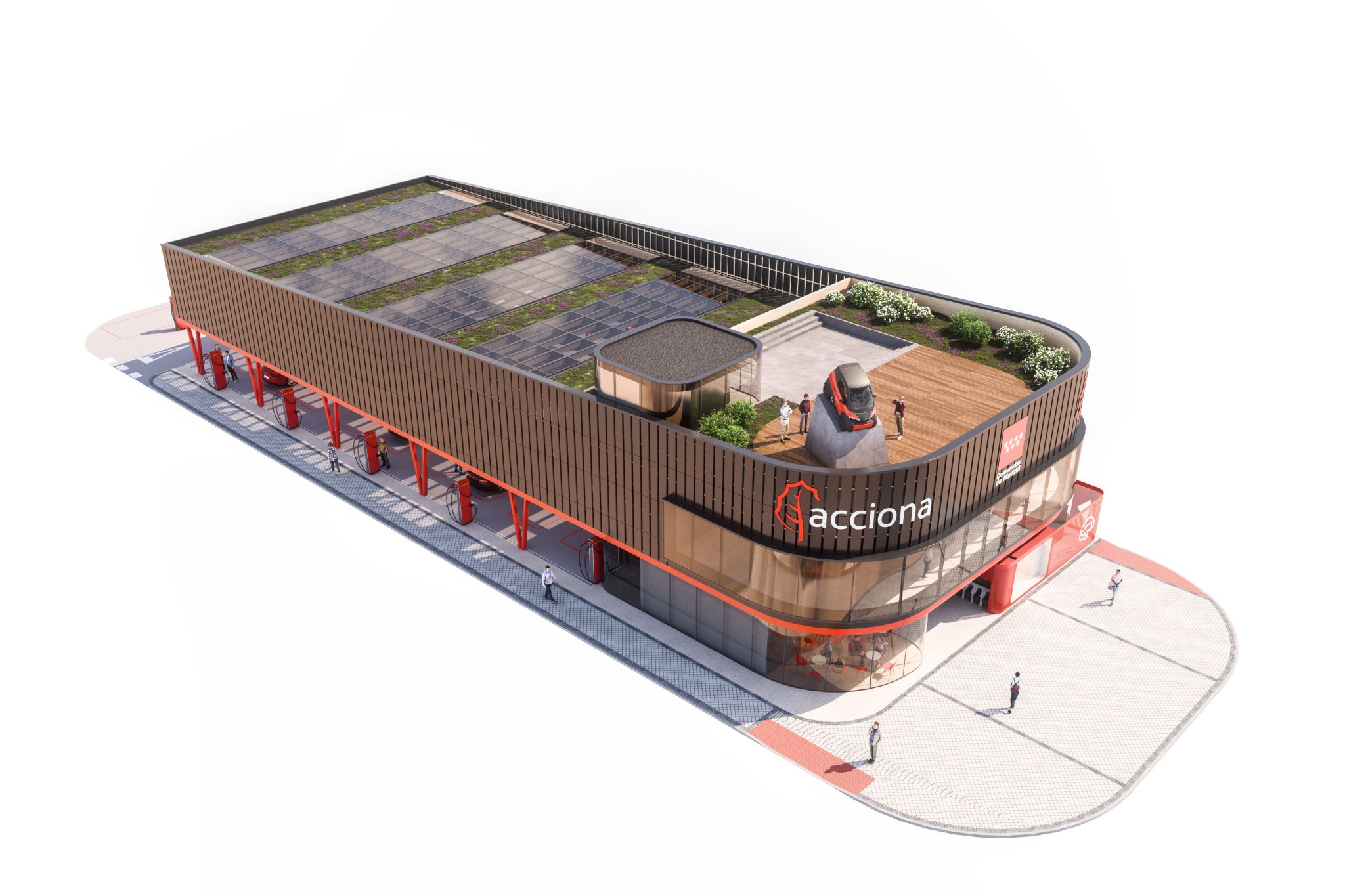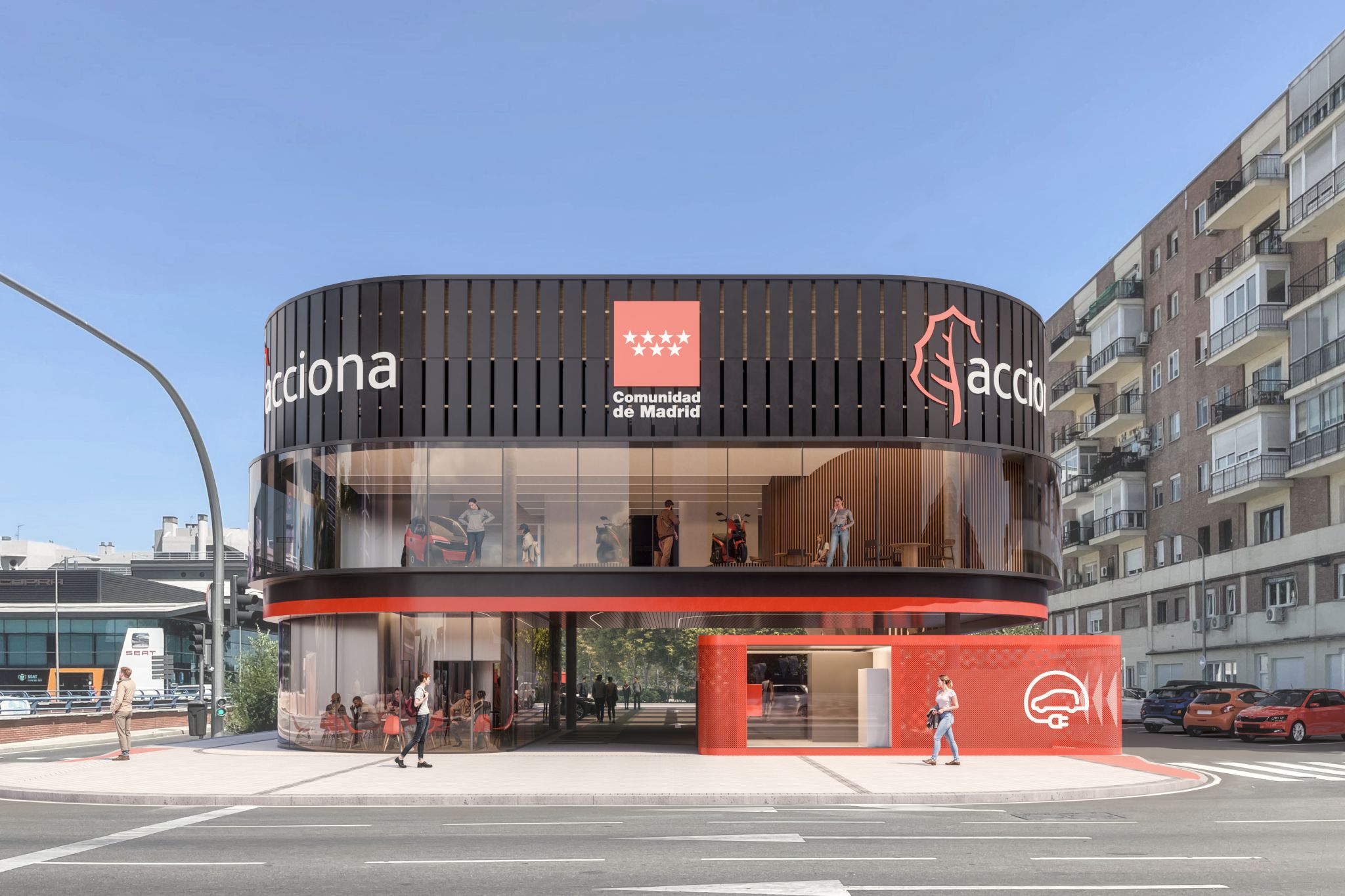 Este proyecto de Cano y Escario Arquitectura parte de una idea clara, transformar un entorno urbano duro, dominado por el alto tráfico y la verticalidad corporativa, en un espacio acogedor, humano y eficiente, transformando una antigua estación de servicio degradada, en un nodo estratégico de 4.000 kW de potencia, integrado en el futuro desarrollo de Madrid Nuevo Norte.
