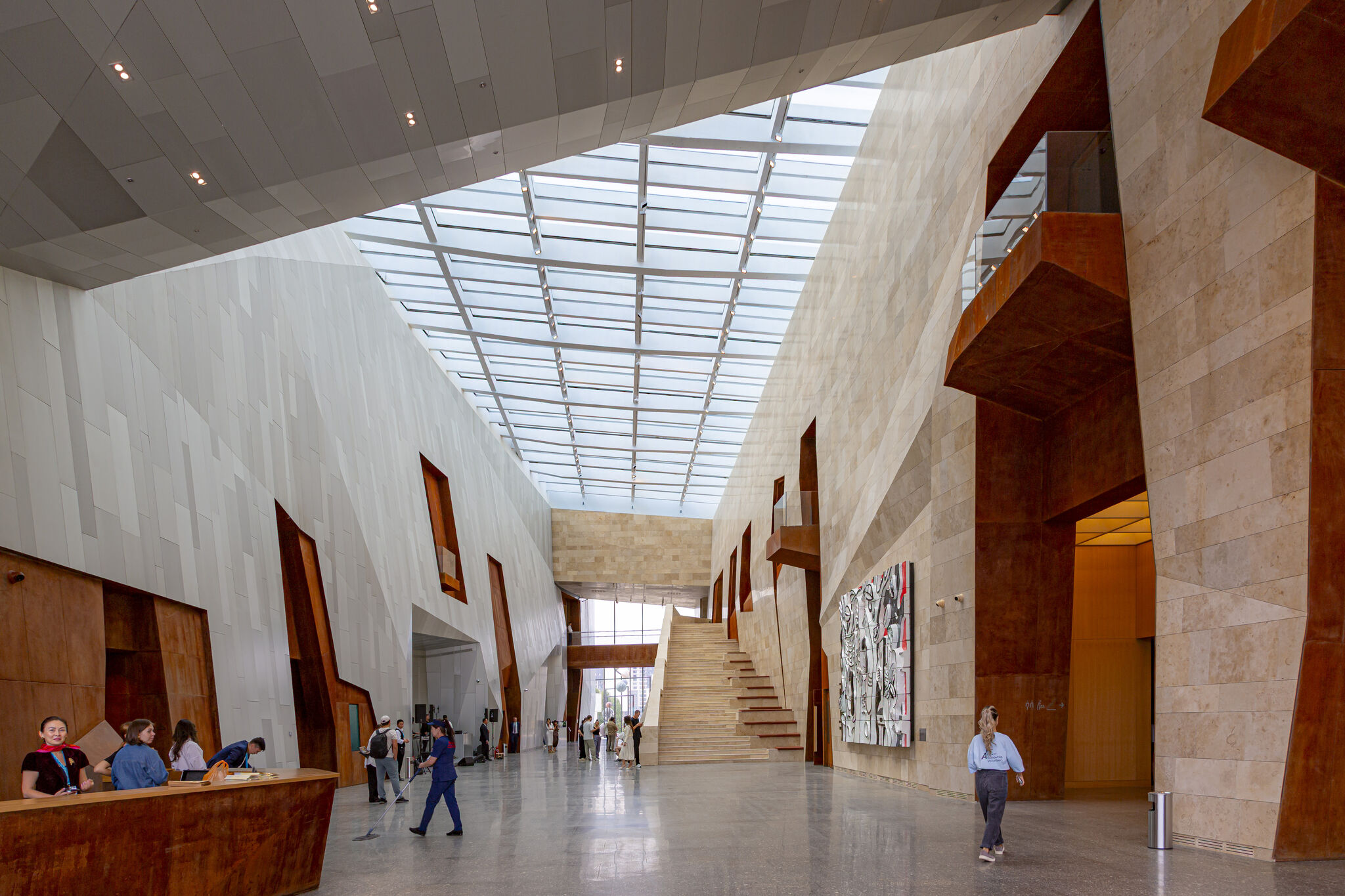 El diseño arquitectónico del museo por Chapman Taylor refleja la doble identidad de Almaty: una ciudad dinámica a los pies de las montañas de Tian Shan.