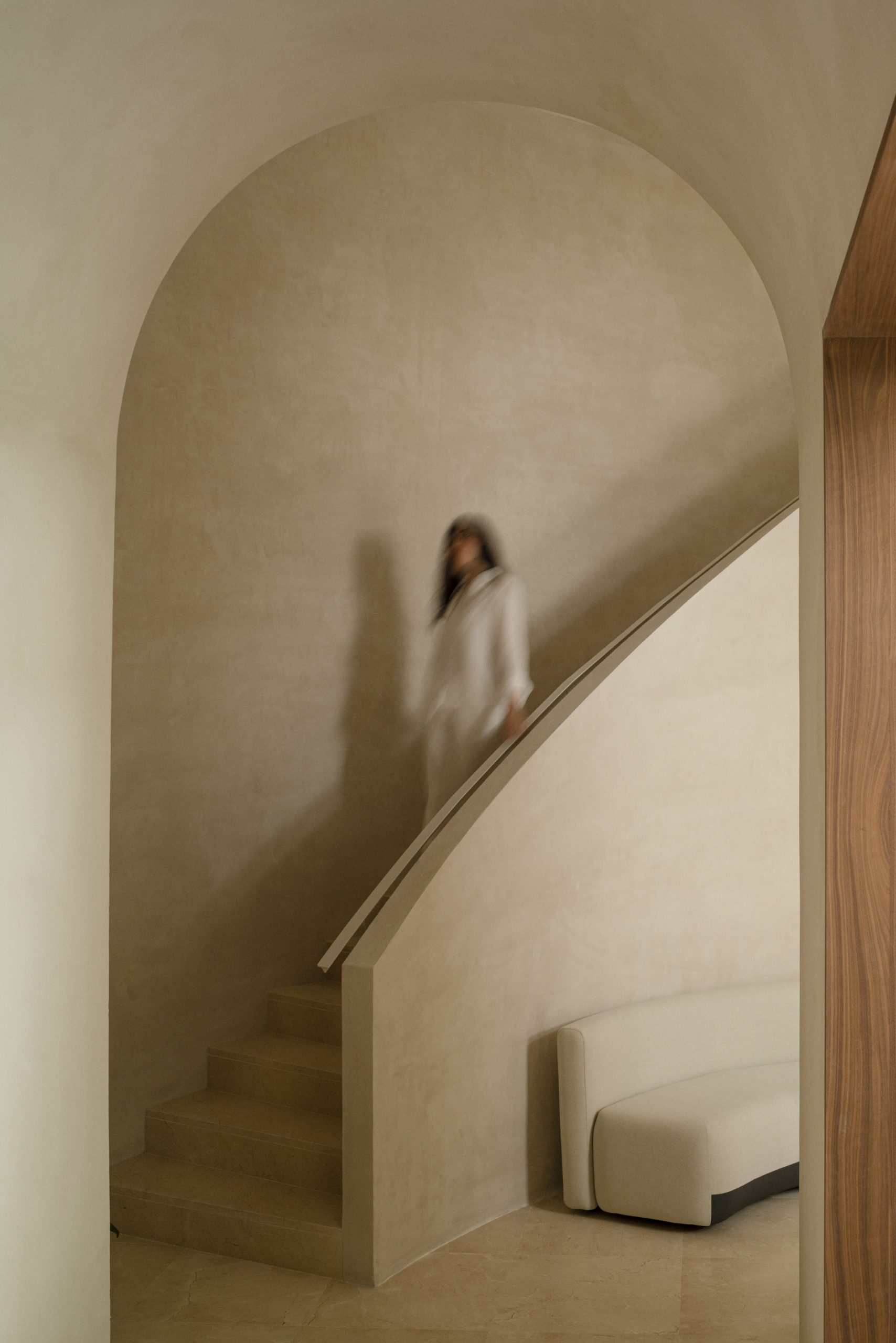 Desde el inicio se ha buscado crear espacios amplios en los que toman protagonismo las formas y superficies curvas como el arco de medio punto con los que se ha pretendido crear un lugar con una atmósfera diferenciadora y especial.