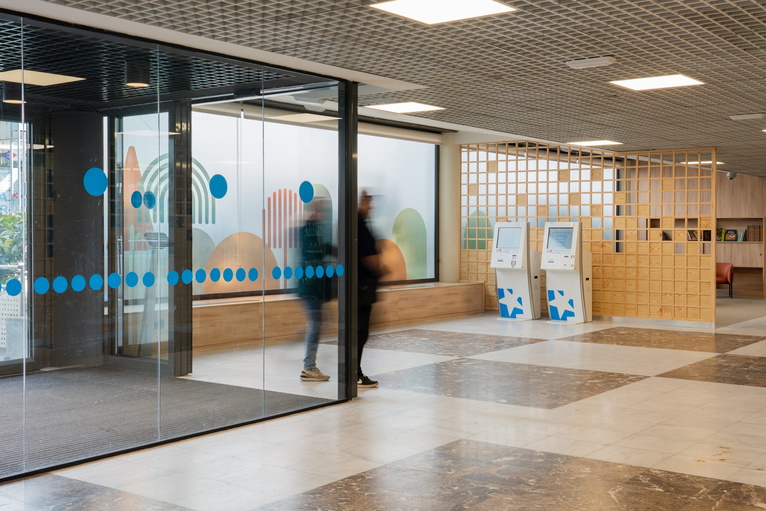 El hall materno-infantil del Hospital Universitario La Paz desempeña un papel fundamental en la organización funcional del hospital, actuando como punto de conexión entre distintas circulaciones y concentrando usos diversos: acceso general, atención al paciente, zonas de espera e incluso actividades culturales.