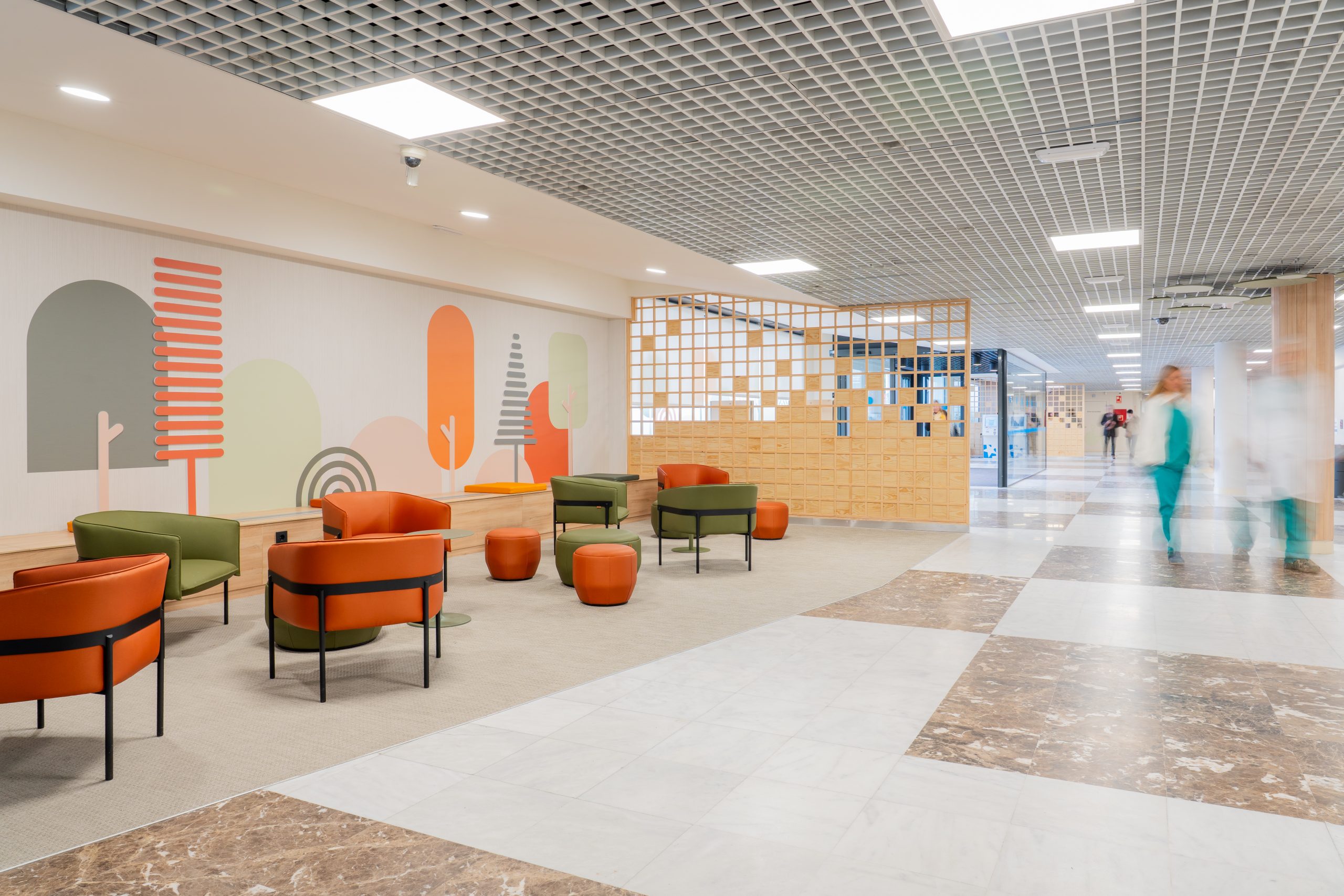 La intervención responde a la necesidad de transformar este vestíbulo en un entorno más claro, acogedor y comprensible, capaz de acompañar emocionalmente a sus usuarios desde el momento de llegada. Más allá de su función como espacio de paso, este hall se redefine como un lugar de encuentro, espera y orientación dentro del hospital.