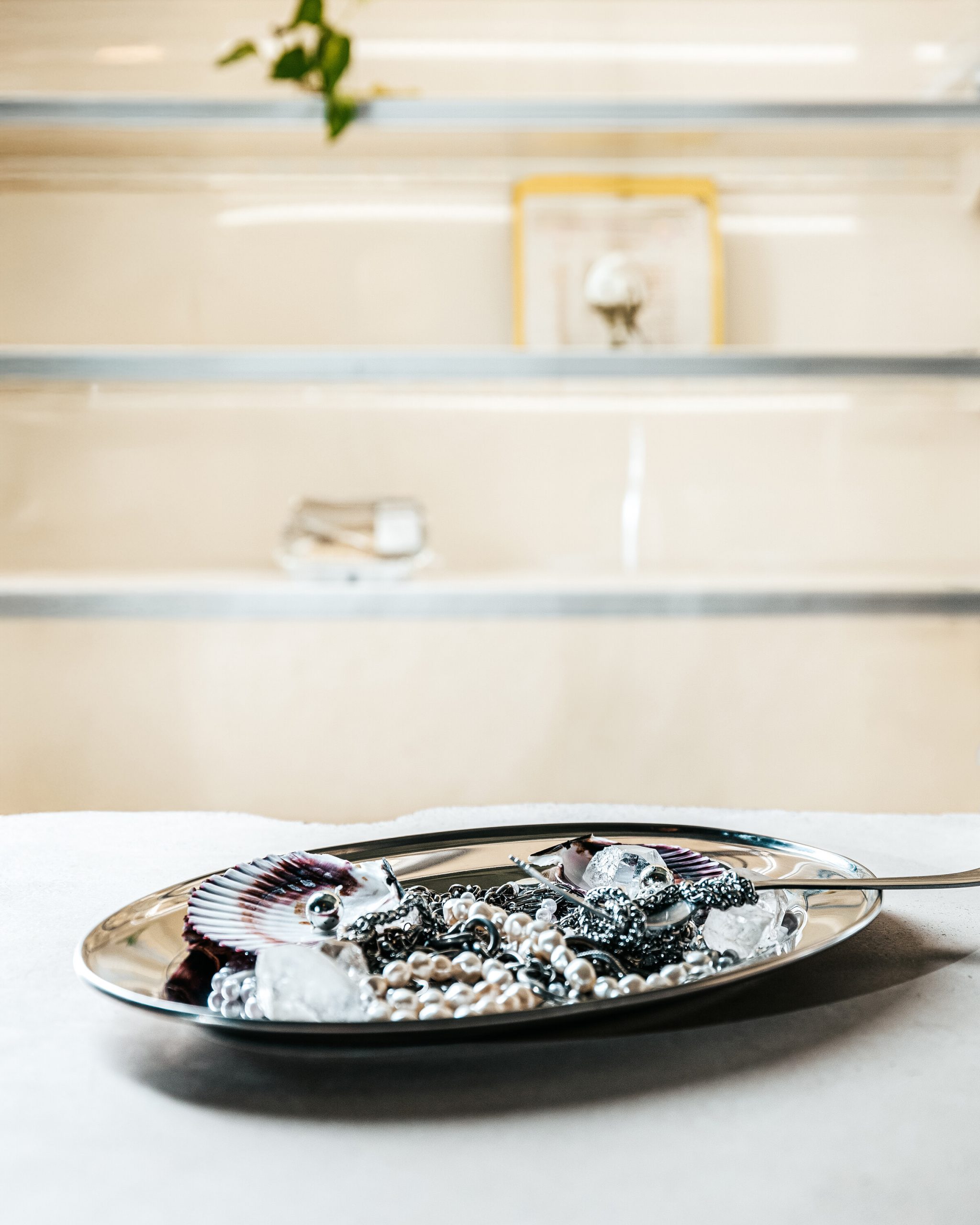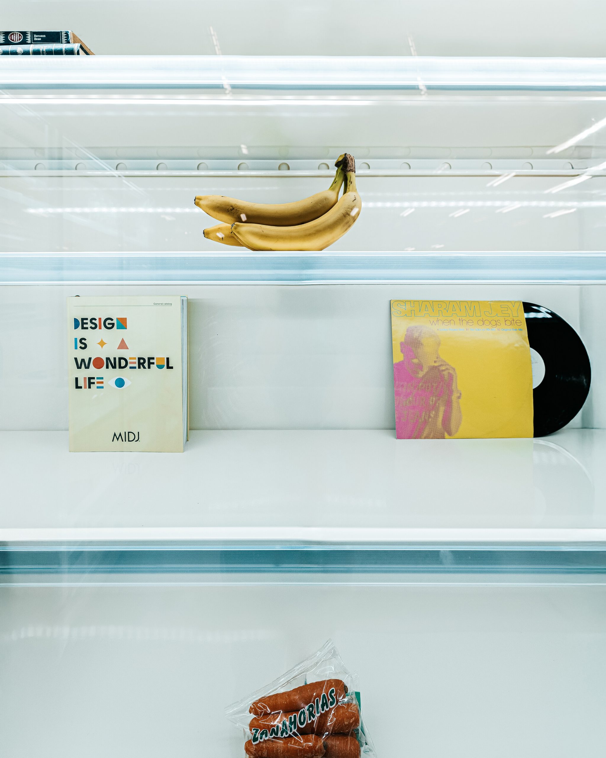 El lenguaje brutalista se prolonga con un enfoque radicalmente minimalista en todo el interior. Estanterías de acero, suelos de hormigón pulido y cajas registradoras diseñadas como monolitos escultóricos refuerzan esta estética. El resultado es una atmósfera sobria, donde la iluminación indirecta ensalza los productos mediante el contraste con sus propias sombras.